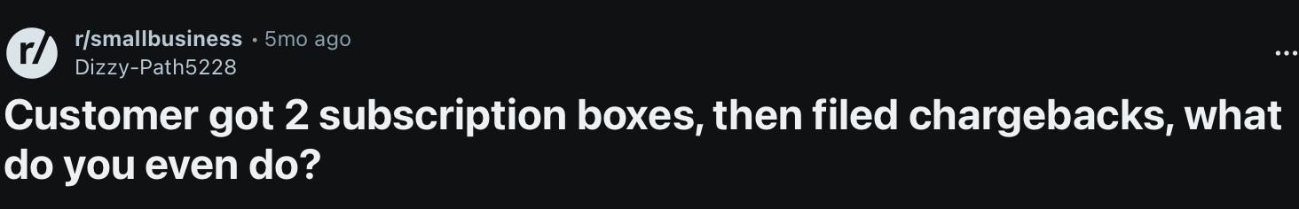 Dizzy Path runs a small subscription box business. Things had been going pretty well. Until one morning. She woke up to the most frustrating chargeback situation ever.