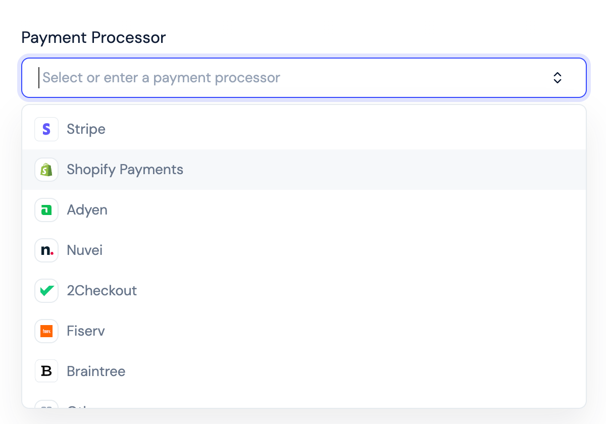 2. Select your relevant payment processor(s).